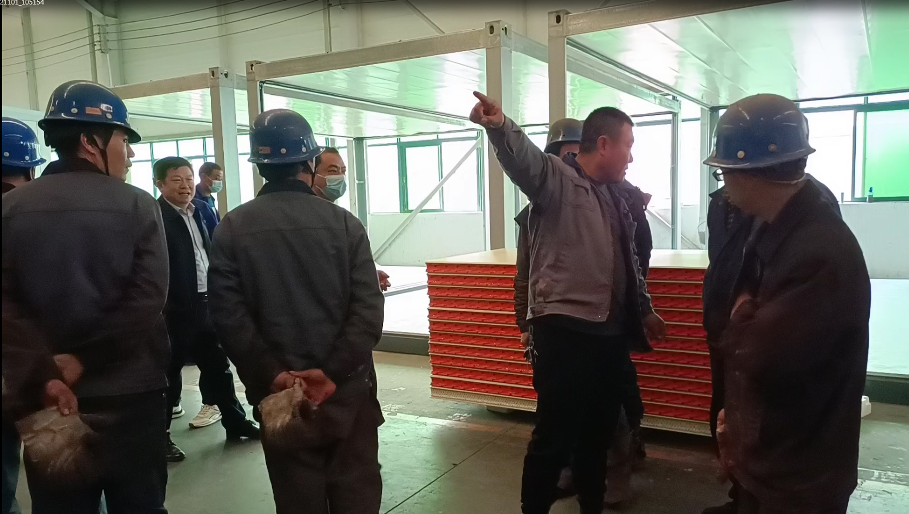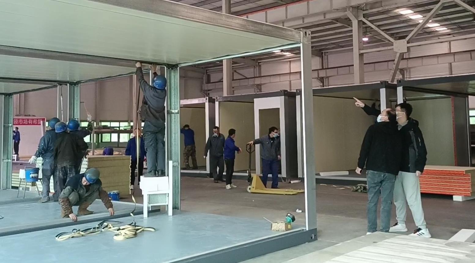 決策下達后,鋼構和集術的30名技術骨干員工很快到達生產現場,綠豐科技的管理人員也聞訊放下手頭工作到車間幫忙抬板,搬運物資。綠豐科技支部副書記、生產副總李公壯勇挑重擔,謀定而動,動員黨員先行,做好表率。生產團隊優化組裝場地,各個部門齊心協力加快生產進度。保障生產,200多名員工吃住在廠區,睡沙發,睡車間,打地鋪。