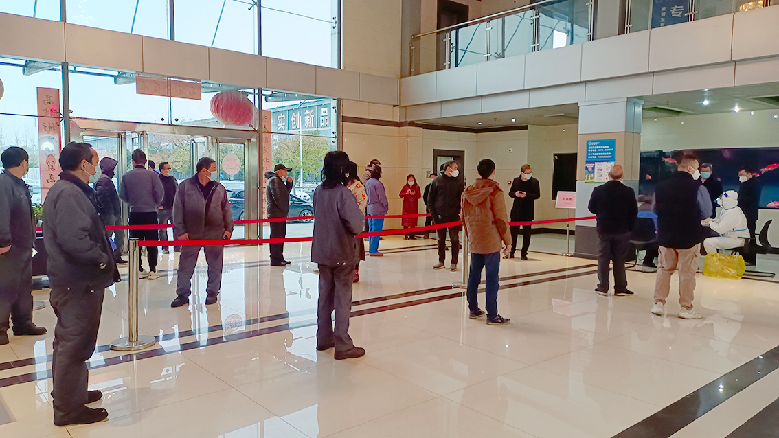 在生產車間通宵忙碌的同時,集團綜合辦在集團疫情指揮領導小組組長李公杰指揮下高效組織、精心協調開展廠區員工核酸采樣工作,全力保障員工身體健康,確保核酸檢測結果“零感染”,為全力生產保駕護航。公司領導為駐廠員工安排住宿并安排工作人員緊急購置了棉被一百多套送到員工宿舍,給駐廠員工送了溫暖,體現了集團對員工的關懷。食堂工作人員一日三餐把飯菜送到生產現場。